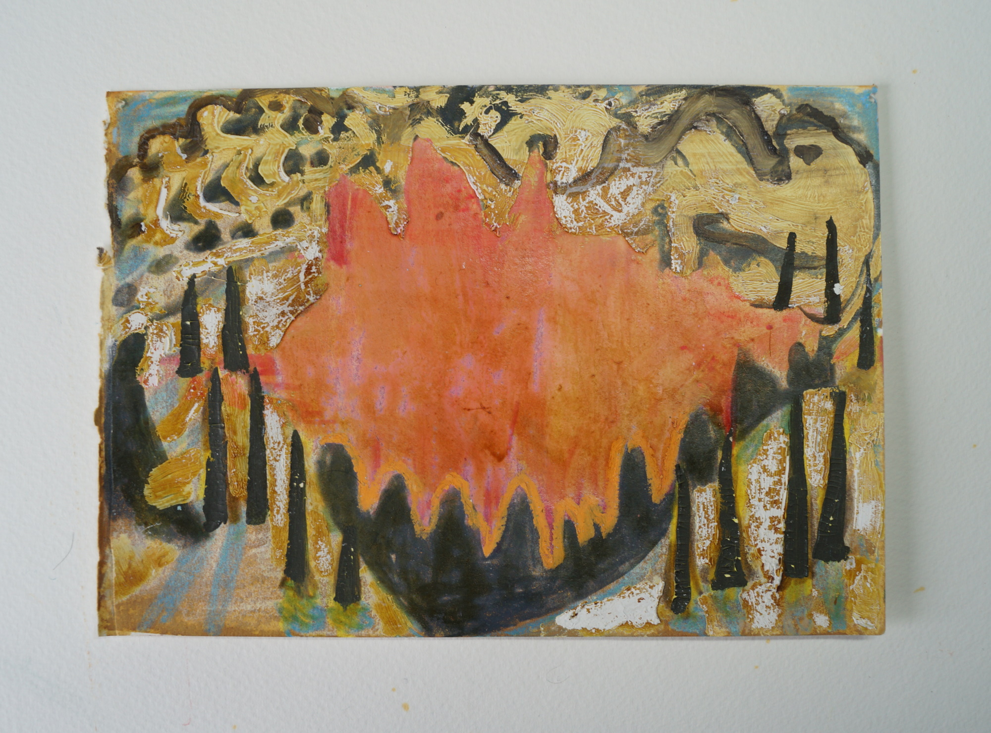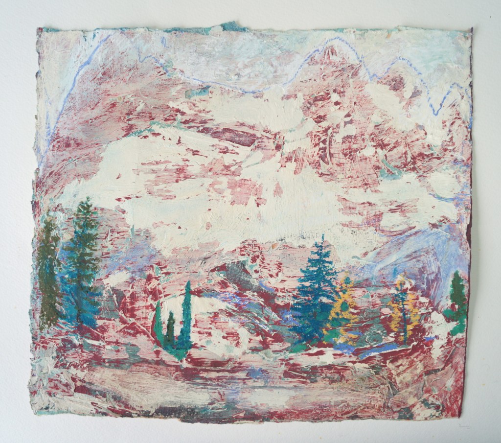 2023 Echoed Voice. Oil and acrylic on paper. 30x30cm Doubles. Gouache on wrapping paper. 15x20cm. The Light in my Eyes. Gouache on paper. 15x20cm.