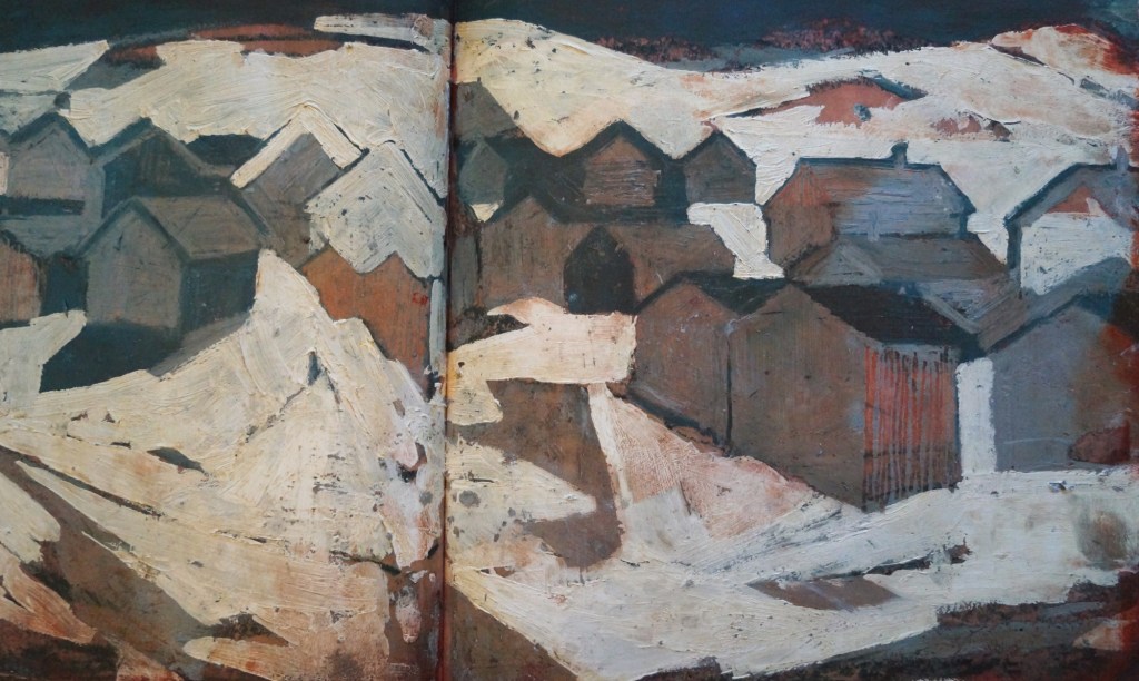 2016 End. Acrylic, oil pastel on paper. 66x54cm. 2016. Royal Scottish Academy Collection.To an Edge. Acrylic and oil pastel on paper. 27x38cm. 2016Sketchbook. 2016The Dream Catcher’s Shoes. Oil on linen. 5 x 6ft. 2016.